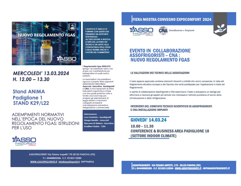 Evento in collaborazione Assofrigoristi- CNA: Nuovo Regolamento F-gas – le valutazioni delle Associazioni dei tecnici