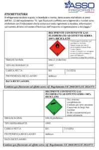 L’Associazione ha predisposto etichette a norma di legge per il gas riciclato e rigenerato, sia per gas in classe A1 (non infiammabili) sia per gas in classe A2L (lievemente infiammabili e le mette a disposizione di associati e tecnici interessati.
